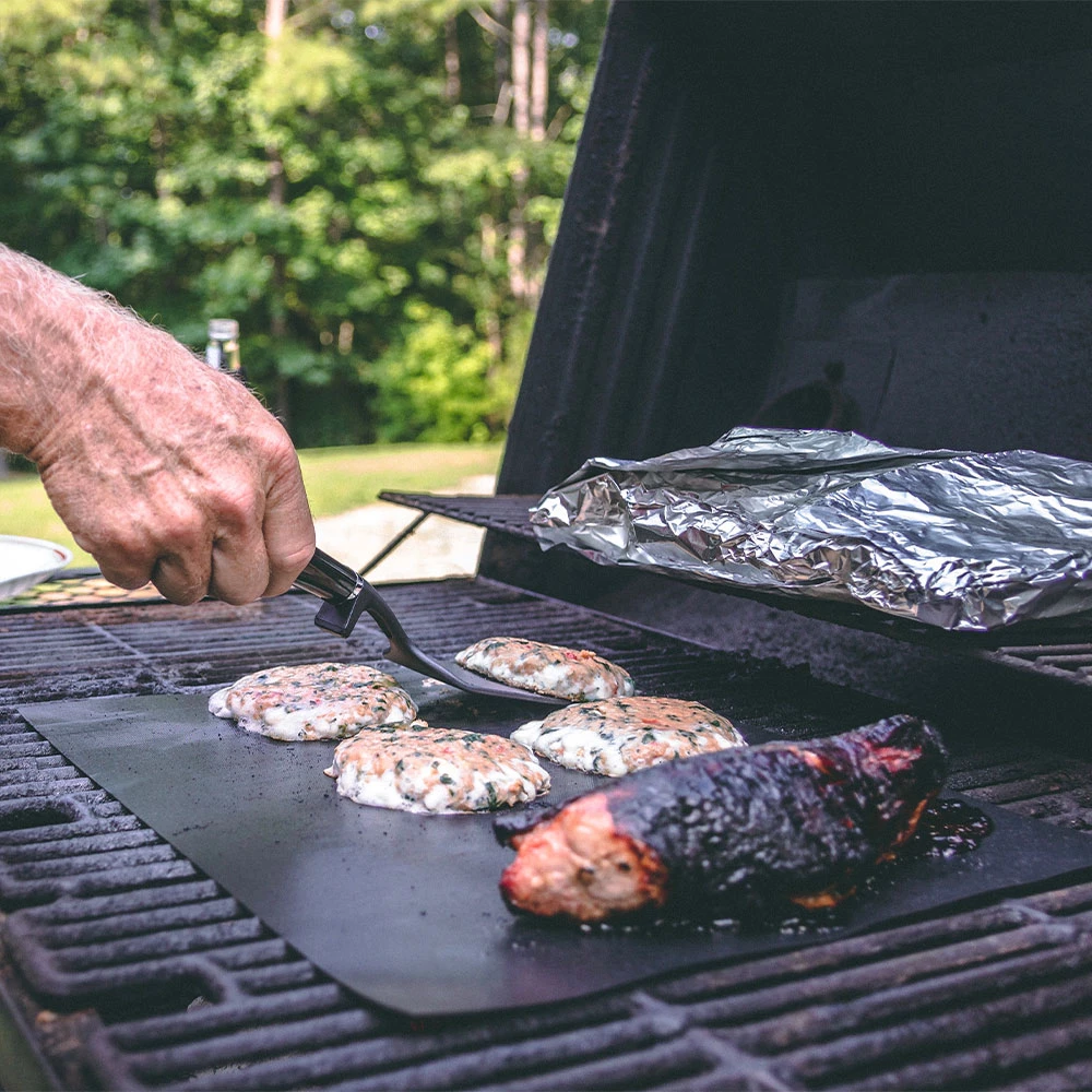 A set of non-stick grill mats that provide a clean cooking surface and prevent food from falling through the grates.